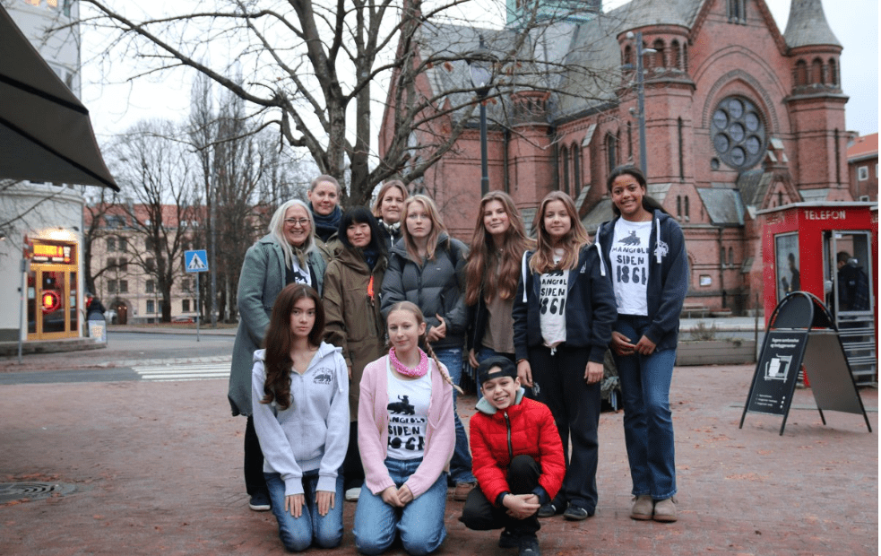Elever og foreldrene Silje Jerpstad , Uma Feed, Kristin Horn Talgø og Katinka Odner var på plass tirsdag ettermiddag. Foto: Stella Oter Lindeberg / Sagene Avis