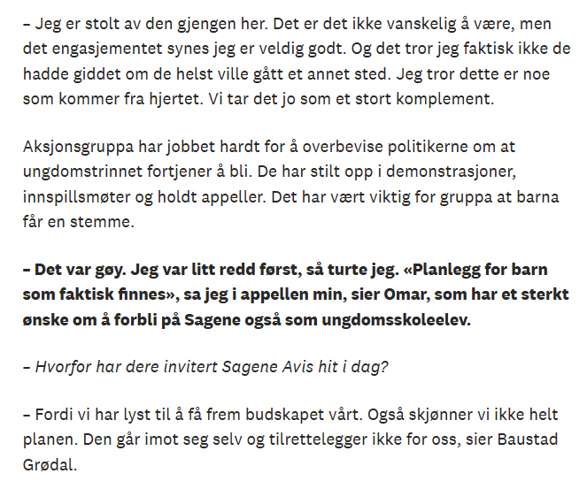 Dette handler om ansvar og om å se barna som ellers ikke blir sett. Det handler om å bygge en bydel og en by der alle barn har tilhørighet og en framtid. Vi ønsker dialog og stiller gjerne til et møte for å utdype lokale erfaringer og kilder/referanser. Med vennlig hilsen FAU Sagene skole