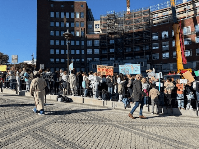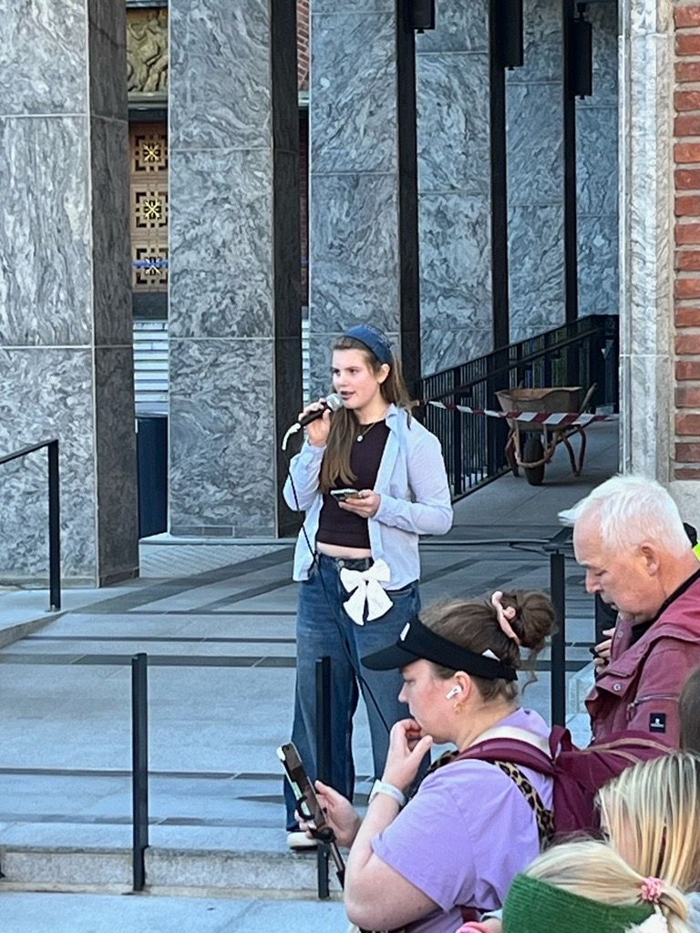 Kjære politikere, foreldre, medelever, og alle dere andre som har stilt opp i dag for å støtte oss som er her for å få vår stemme hørt. I dag har jeg fått æren av å stå her oppe og representere skolen min med alle dere i ryggen.
