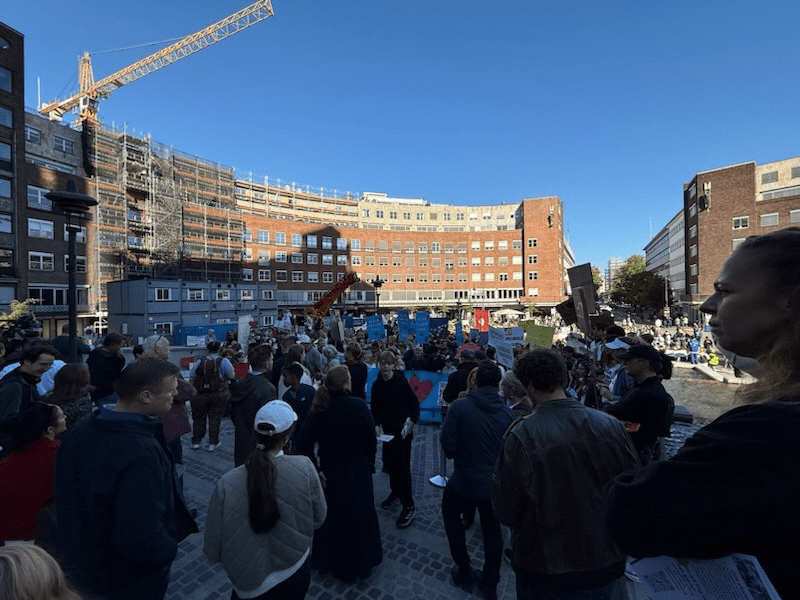 Den 24. september holdt vi en demonstrasjon foran Rådhuset i Oslo. Vi ville vise at Sagene Ungdomstrinn ikke må legges ned. Sammen med Abildsø skole, Fyrstikkalleen skole, Bekkelaget skole, Karlsrud skole, Maridalen skole, Begge Ensjø-skolene, Nordpolen skole og Møllergata skole demonstrerte vi mot skolebehovsplanen.