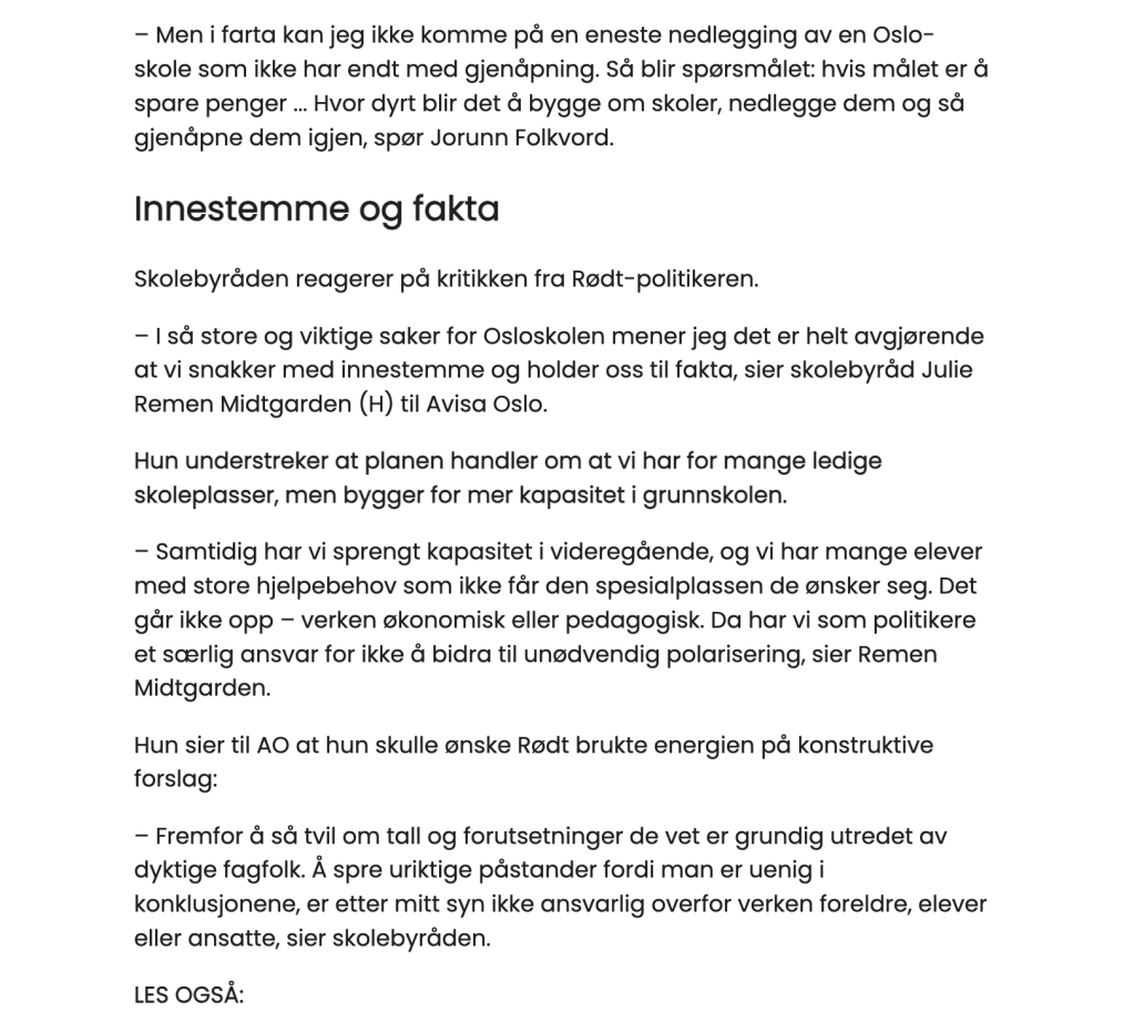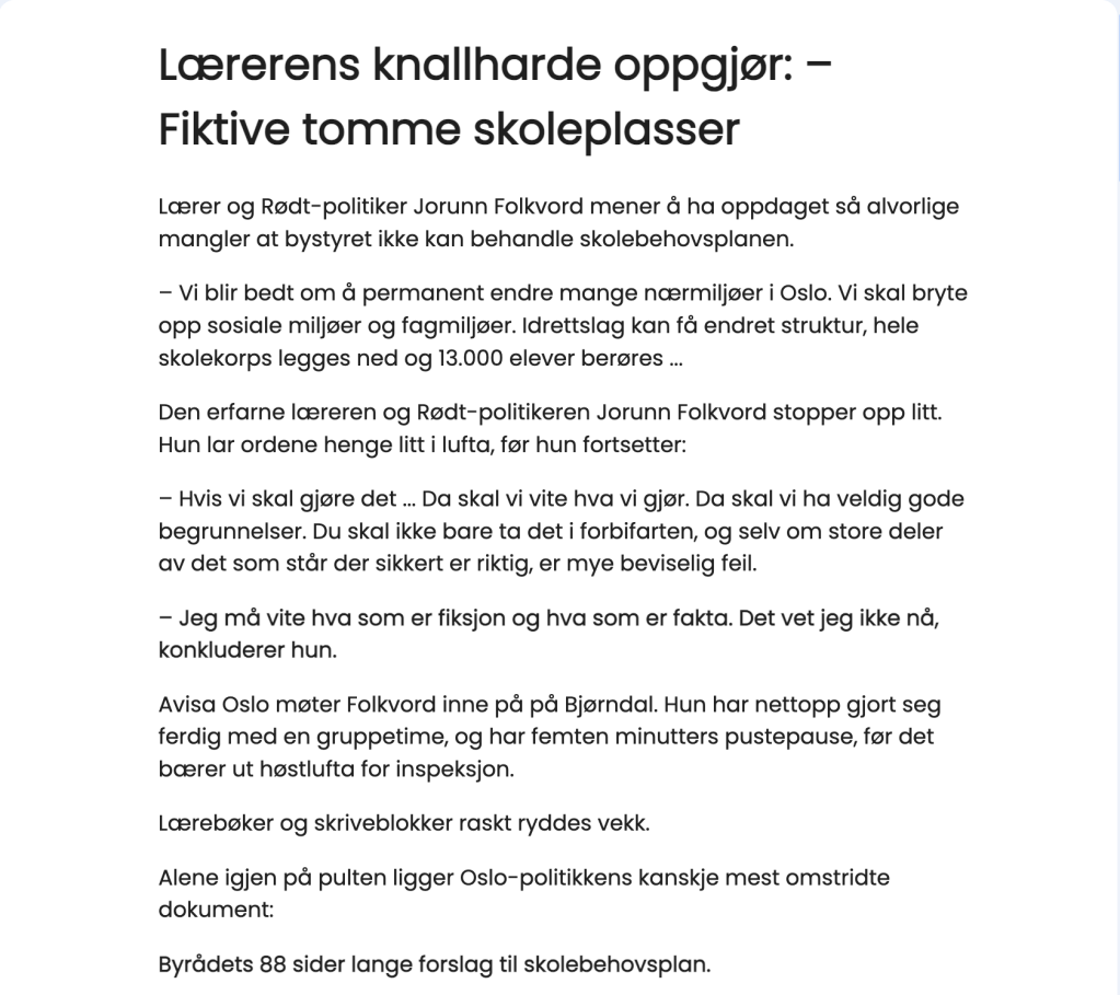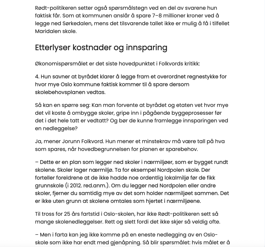 Vi står her i dag for å si tydelig: Maridalen trenger skolen sin. Barna trenger skolen sin. Og Oslo trenger levende bygder og nabolag – ikke bare sentralisering og nedleggelser.