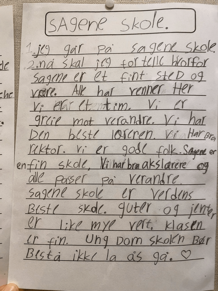 - På en mindre ungdomsskole som Sagene er det lettere for lærere å se det når elever faller ut faglig eller sosialt, dette er fordi de kjenner oss godt nok til å merke det ved andre faktorer enn bare karakterene våre.